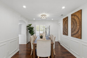 Tucked away on a quiet cul-de-sac behind the gates of prestigious Coto de Caza, 6 Mahogany Run is an immaculate former model home blending timeless elegance, modern efficiency, and elevated everyday living. This spacious two-story residence offers 5 bedrooms, a bonus/theater room, and 4 baths—ideal for both refined entertaining and comfortable family life. Inside, walnut hardwood flooring, travertine, soaring ceilings, and newly added recessed lighting create a warm, sophisticated ambiance. The updated gourmet kitchen features granite countertops, designer backsplashes, a large center island, breakfast bar, and a premium appliance suite including Wolf, SubZero, and Bosch. It opens to the breakfast nook and connects to the formal dining room with custom wainscoting. Multiple living spaces provide flexibility and comfort. The family room offers a newly updated fireplace, wet bar, and French doors leading to the backyard, while the formal living room features dramatic ceilings and a second refreshed fireplace. A main-level bedroom or office and fully renovated bathroom add convenience and versatility. Upstairs, the reimagined primary suite serves as a private retreat with a fireplace, balcony, and fully renovated spa-like bath. Three additional bedrooms, two full baths, a loft/library, and a fully equipped home theater with tiered seating and a 180-inch screen complete the upper level. Extensive upgrades go far beyond cosmetic, including a full PEX repipe, all-new windows, updated exterior siding, attic air sealing and insulation, and a complete HVAC re-duct. Additional enhancements include a new heat pump and AC system, whole-house UV air filtration, tankless water heater, water filtration and softener system, EV charger with 50-amp wiring, and a finished garage with epoxy flooring. The outdoor space has been completely redesigned with new landscaping, irrigation, a screened-in gazebo, flagstone hardscaping, and a private, resort-style setting ideal for relaxing or entertaining. Recently repainted and meticulously maintained, this home reflects true pride of ownership. Residents enjoy award-winning schools, scenic trails, parks, and access to the Coto de Caza Golf & Racquet Club, with the community’s largest park just moments away. A rare opportunity to own a truly turnkey home in one of Orange County’s most sought-after guard-gated communities.